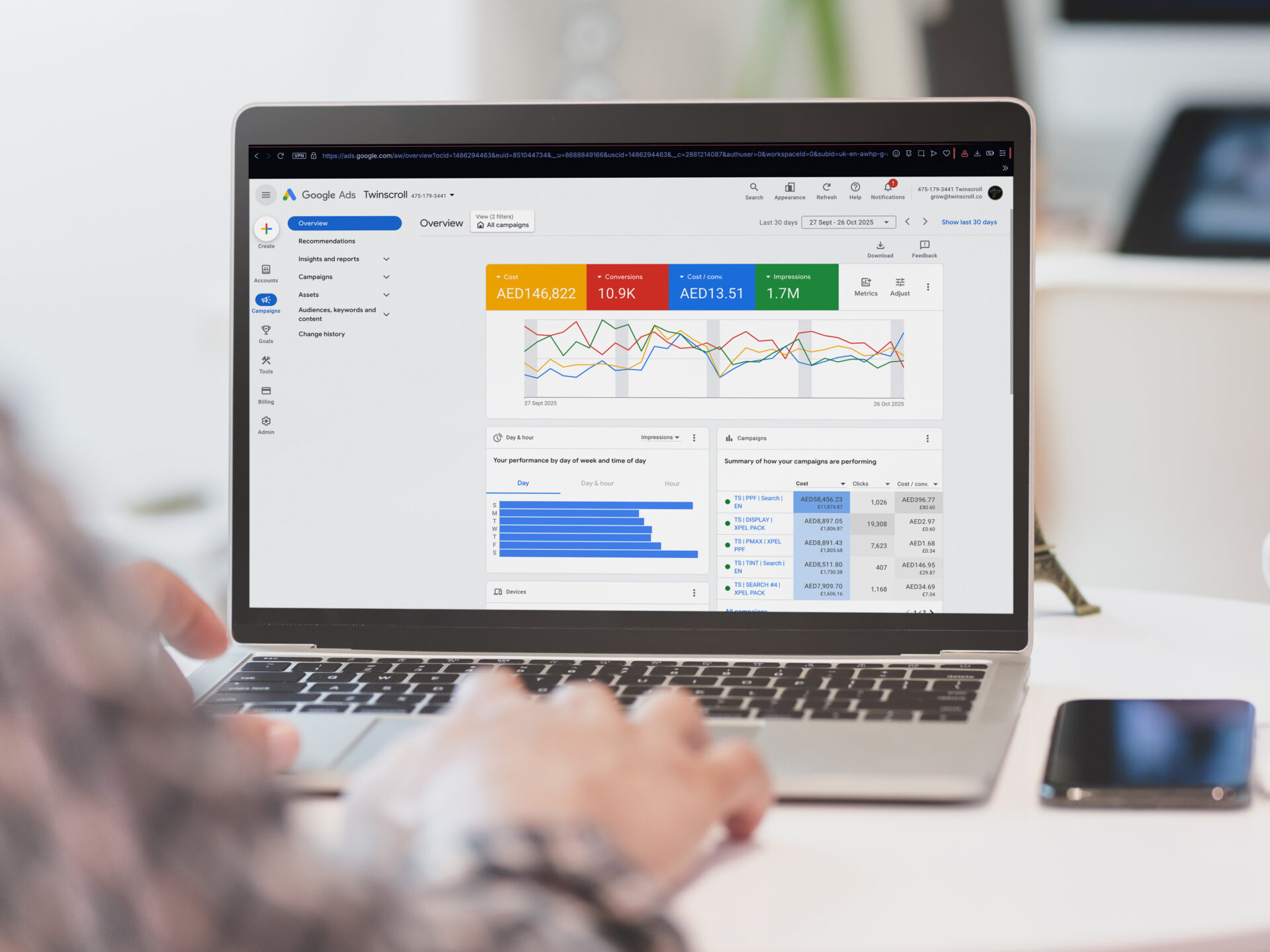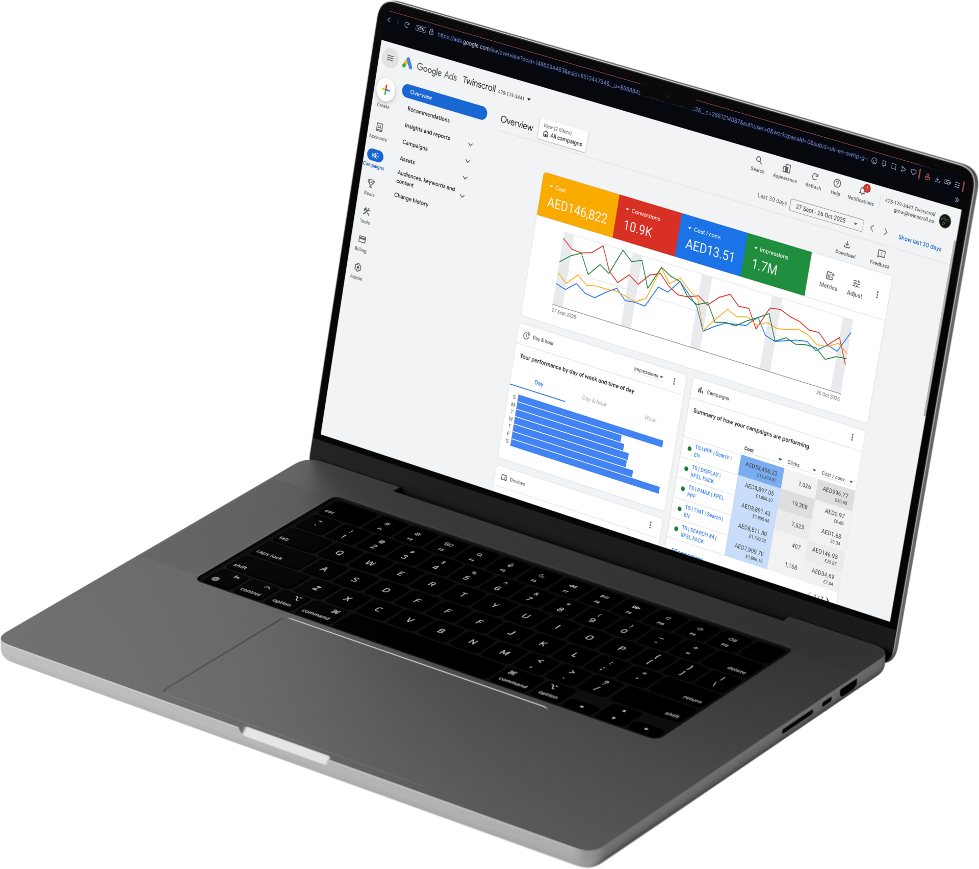We run campaigns that drive sales, not just clicks. From Google to Meta, we manage everything: strategy, design, data, landing pages, tracking, and optimisation — all managed in-house, all built to bring real enquiries and results.